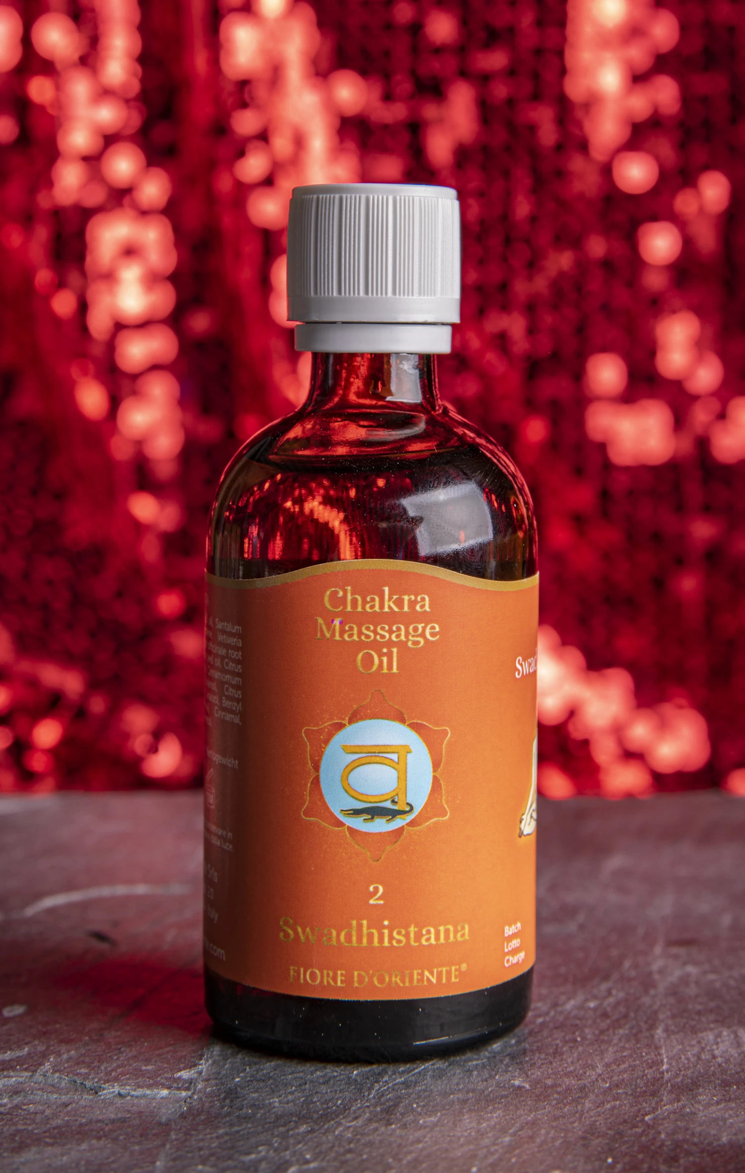 Bringt uns schöpferische Energie, Kreativität, Lebenskraft und Sinnlichkeit. Ist es aus der Balance, leiden wir an chronischer Müdigkeit, Lustlosigkeit und Stimmungsschwankungen. Eine Komposition von Jojobaöl, Sandelholzöl, Vetiveröl, Bitterorangenöl, Mandarinenöl, Zimtrindenöl und Nelkenöl.