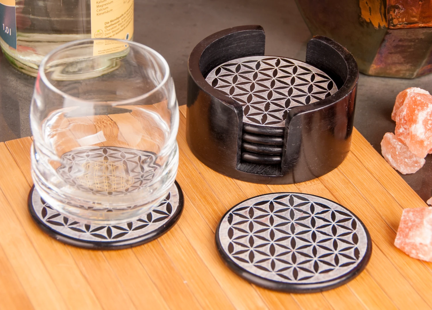 Die Untersetzer sind aus eingefärbtem Speckstein