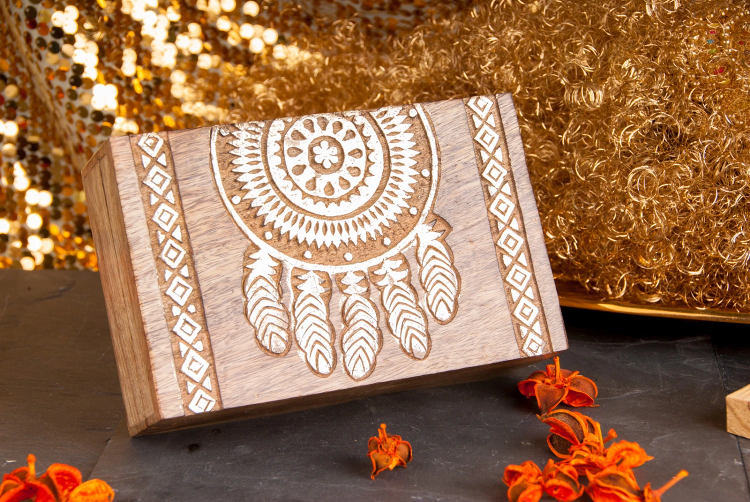 Aufwändig in Handarbeit gefertigte und geschnitzte Truhen im orientalisch modernen Look.