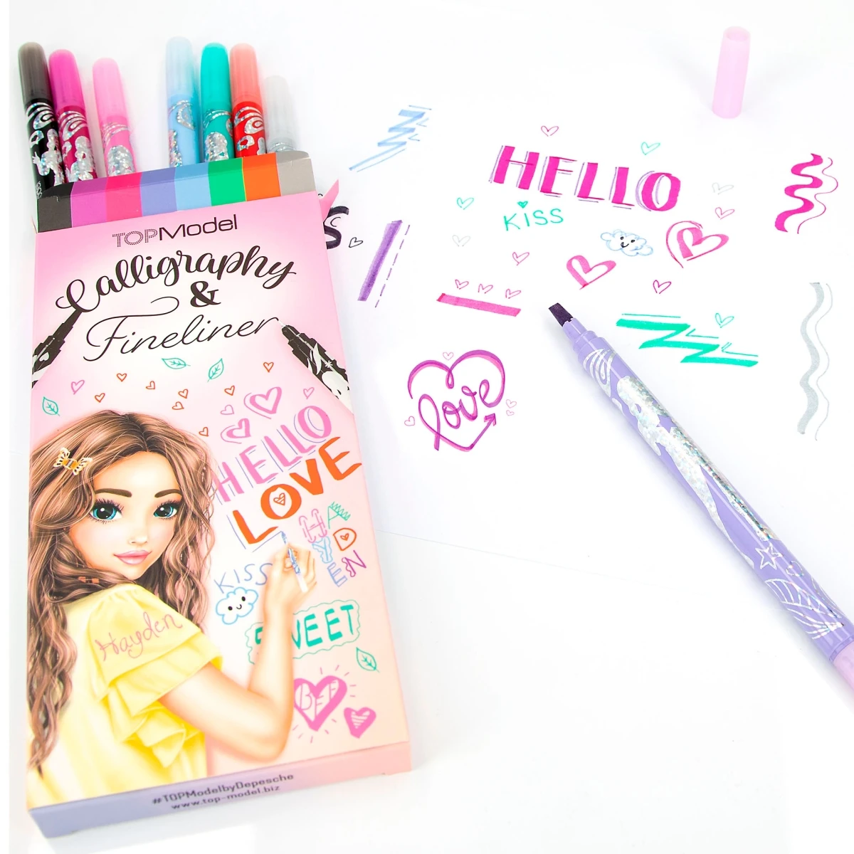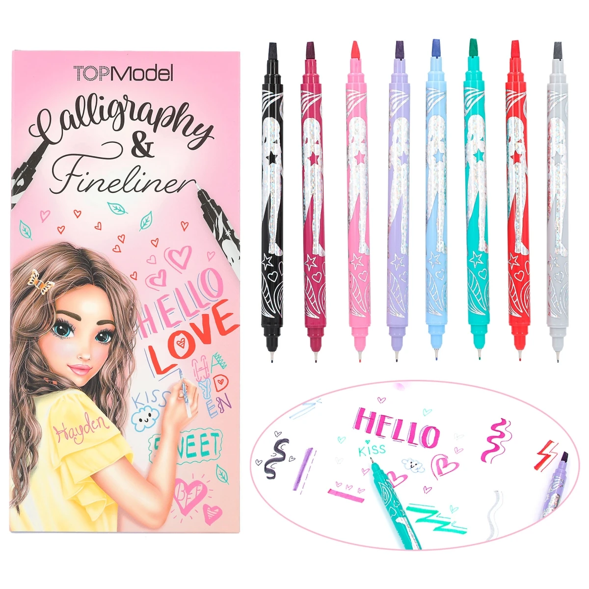 Die 8 Stifte haben auf der einen Seite eine gerade, flächige Spitze, auf der anderen Seite sind sie ein Fineliner.