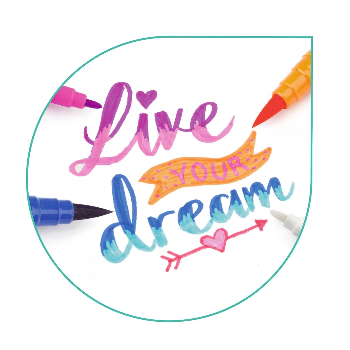 Die Doppelfasermaler haben eine weiche Pinselspitze (0,5-2 mm) auf der einen Seite und eine feste, dünne Spitze (0,5 mm) auf der anderen Seite.