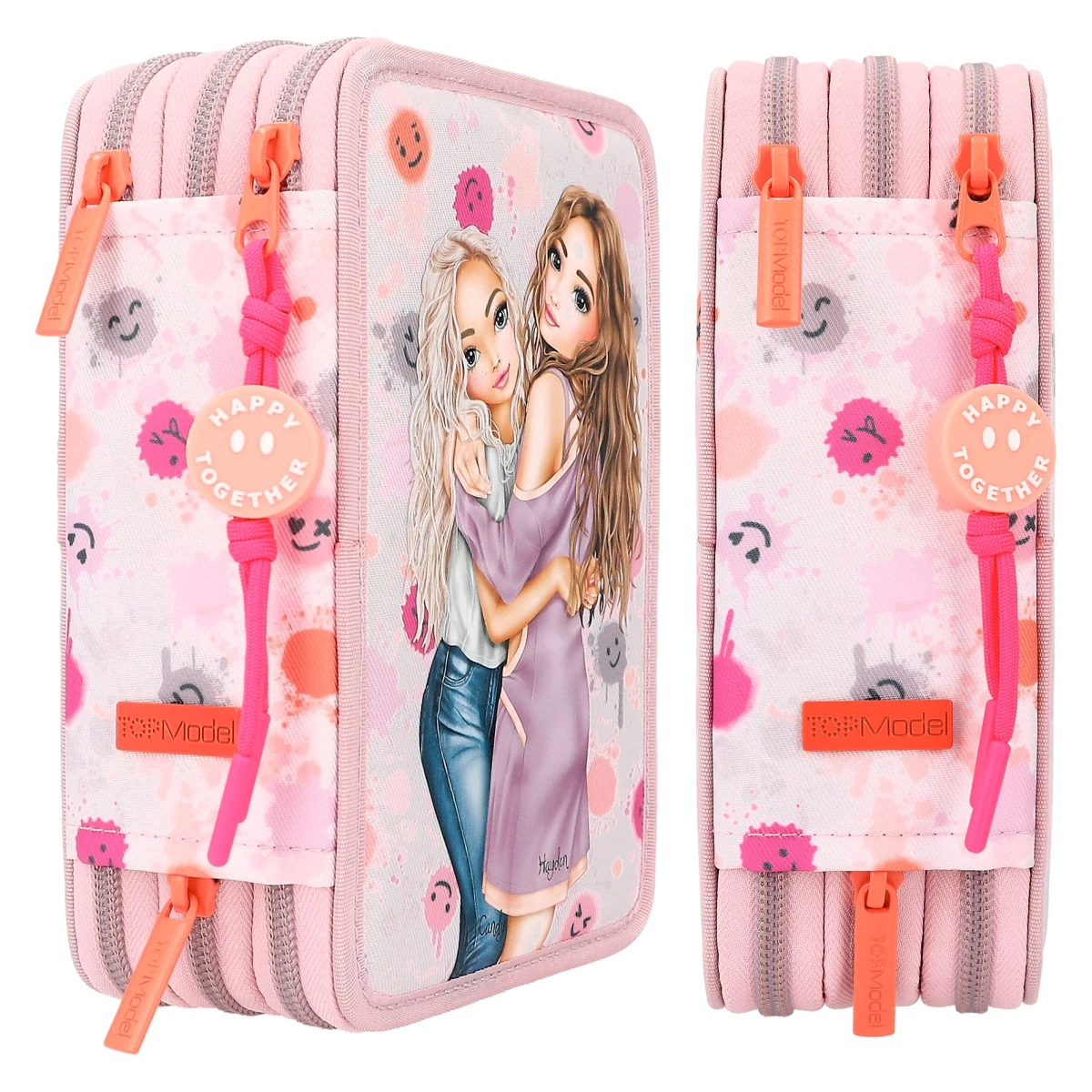 Diese Federtasche macht einfach happy! Mit großem TOPModel-Motiv und niedlichem Smiley-Allover in zarten Farben.