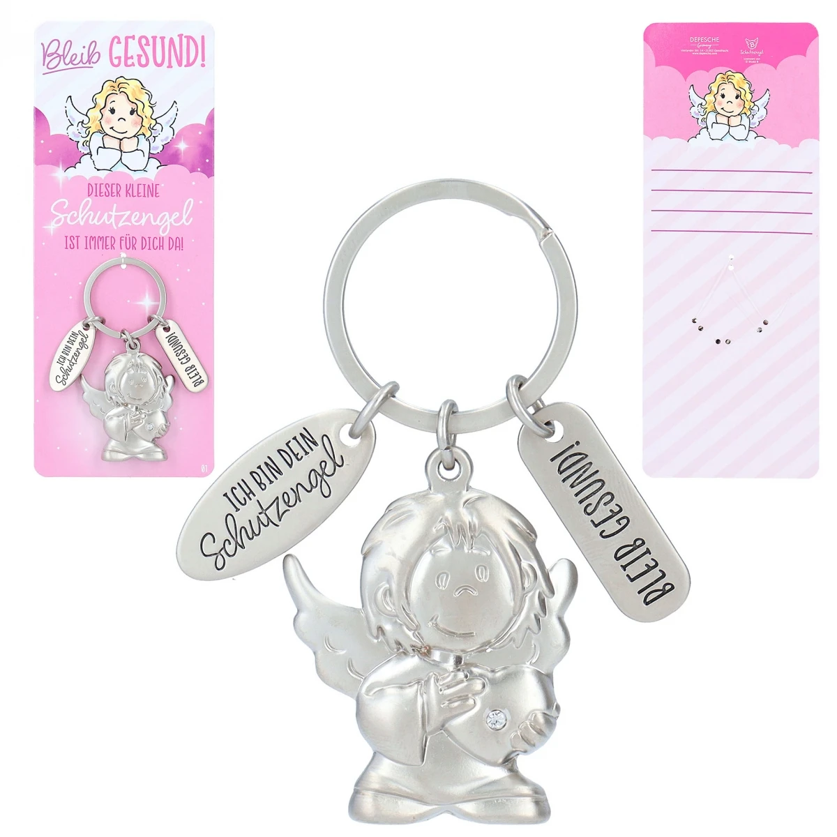 Dieser silberne Schutzengel-Schlüsselanhänger (Zinklegierung) erinnert daran, gesund zu bleiben.