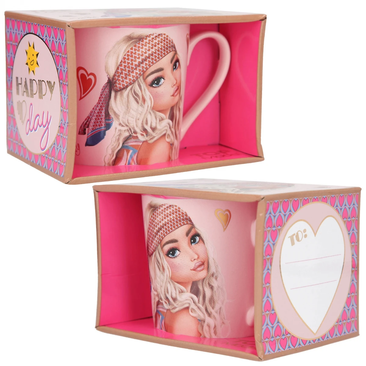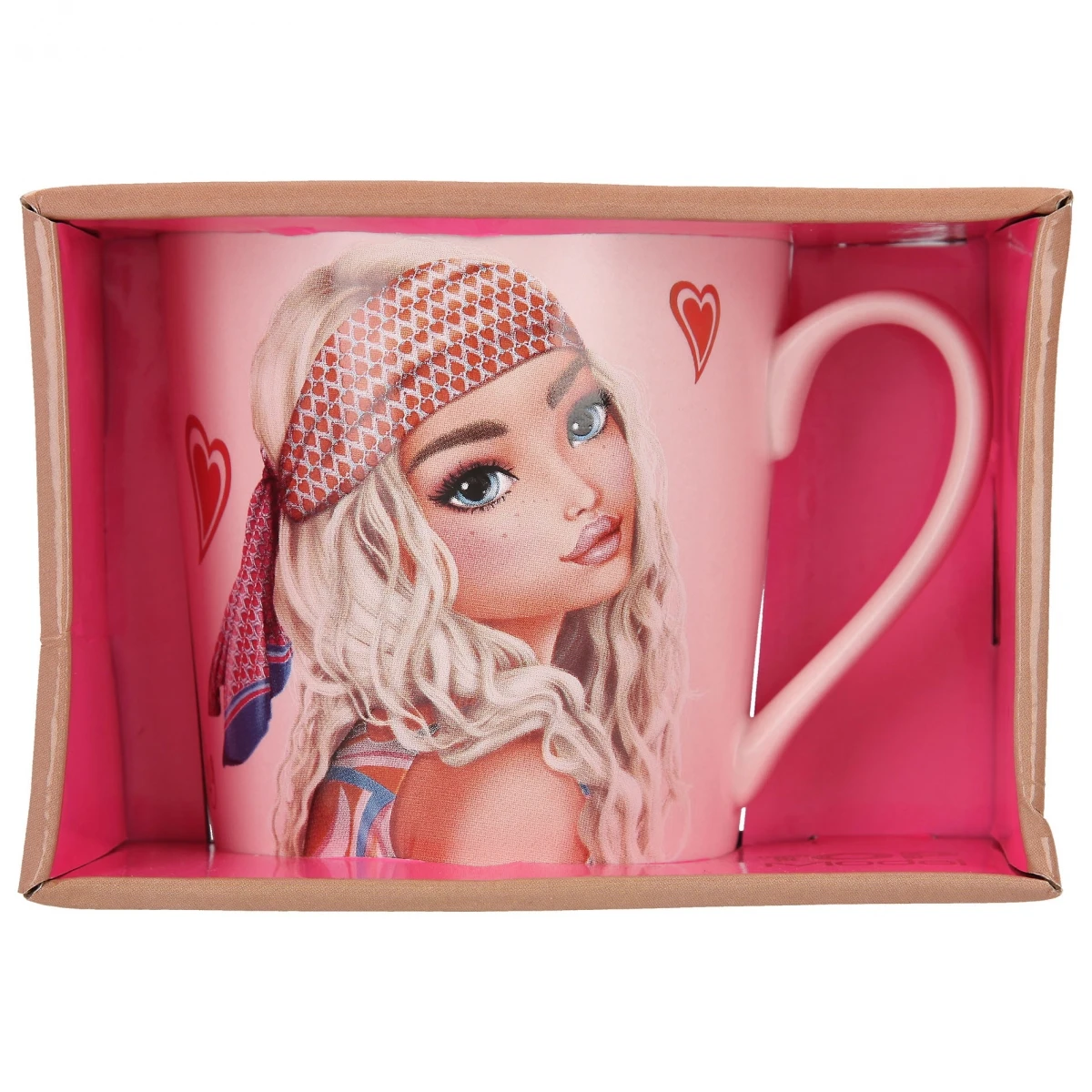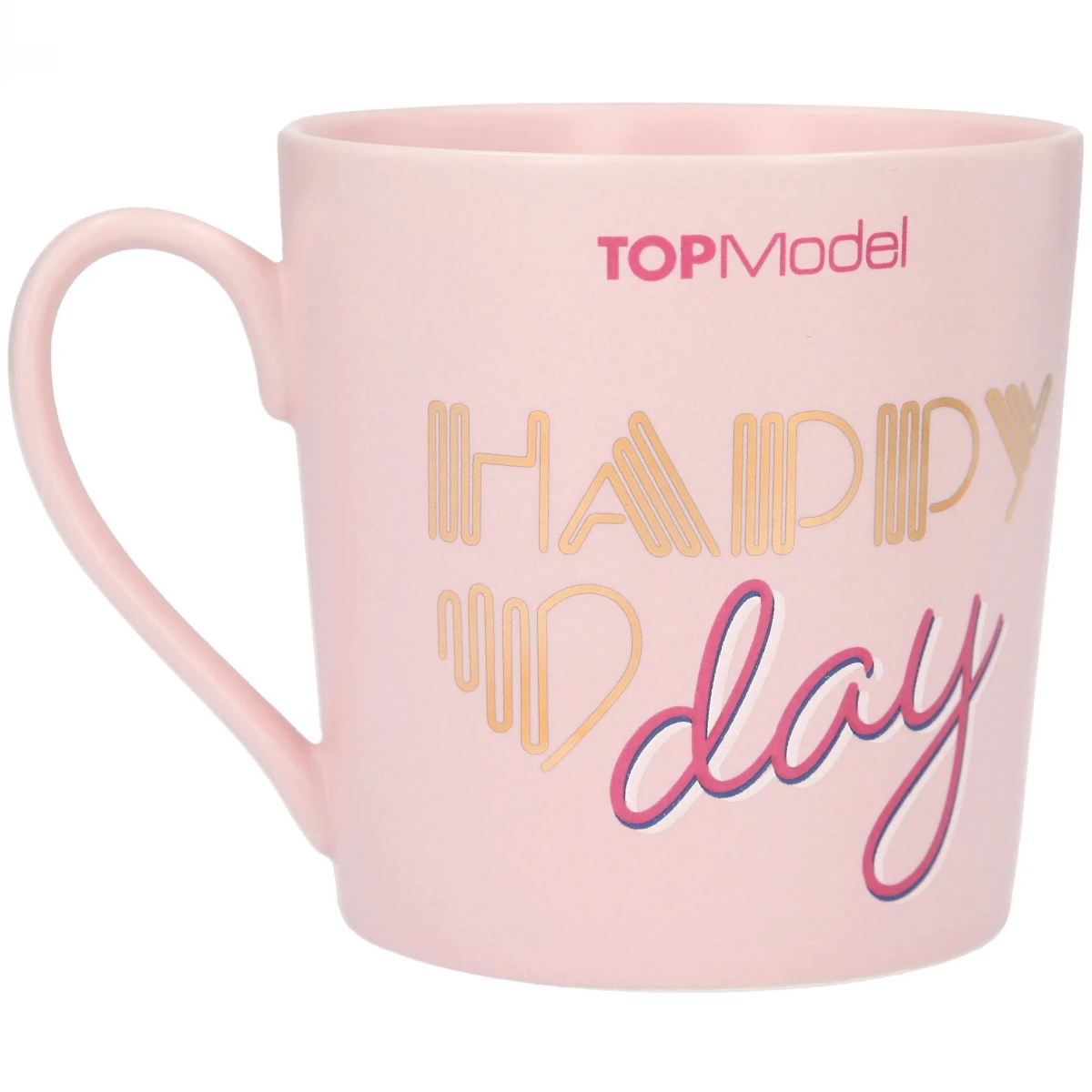 Superschöner rosagrundiger Becher, der an die hippen 70er erinnert: mit coolem Wording-Print, tollem TOPModel-Motiv, edlem Golddruck und verpackt in einem hochwertigen Geschenkkarton.