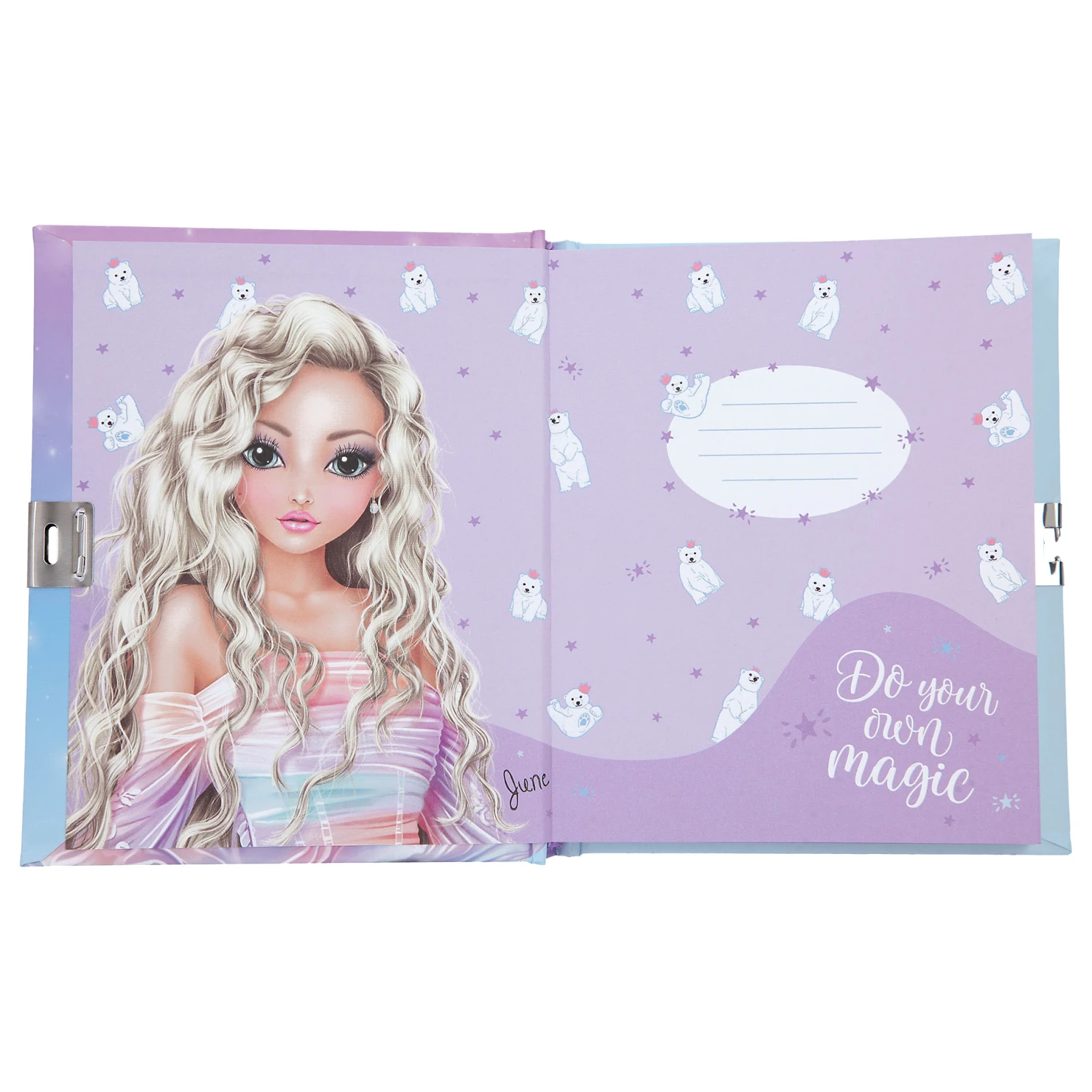 Das Tagebuch aus der TOPModel-Serie ICEWORLD hat 192 linierte und bunt illustrierte Seiten, die von einem Herzschloss vor neugierigen Blicken geschützt werden.