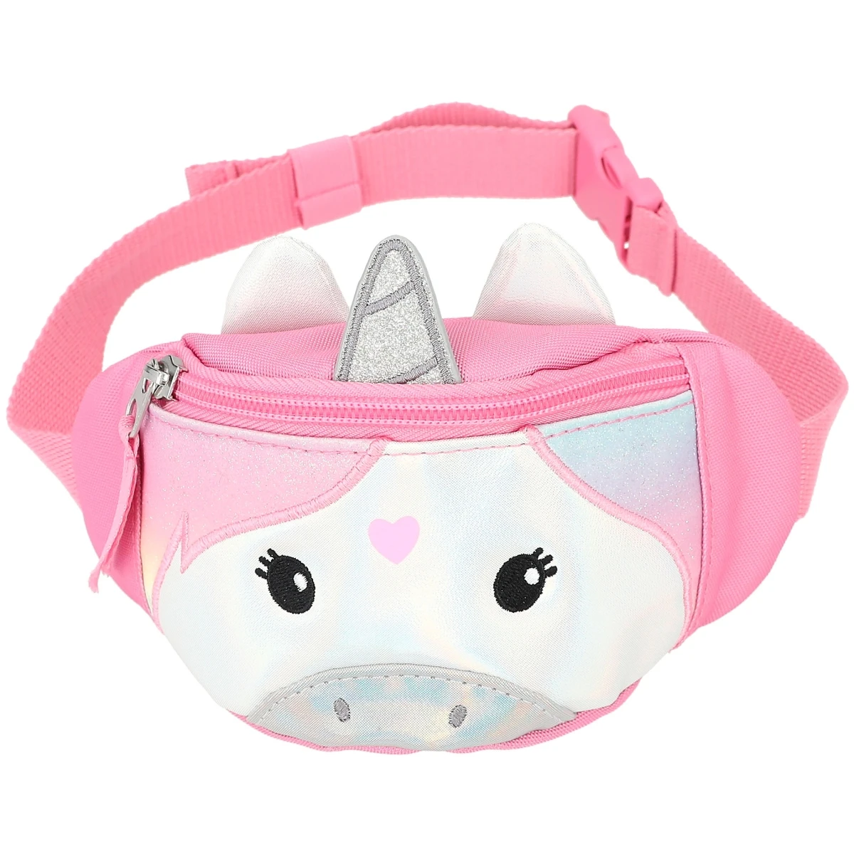 Niedliche pinke Gürteltasche von Princess Mimi in Einhorn-Form. Mit Reißverschluss, Glitzer-Details und einem in der Länge verstellbaren Gurt.