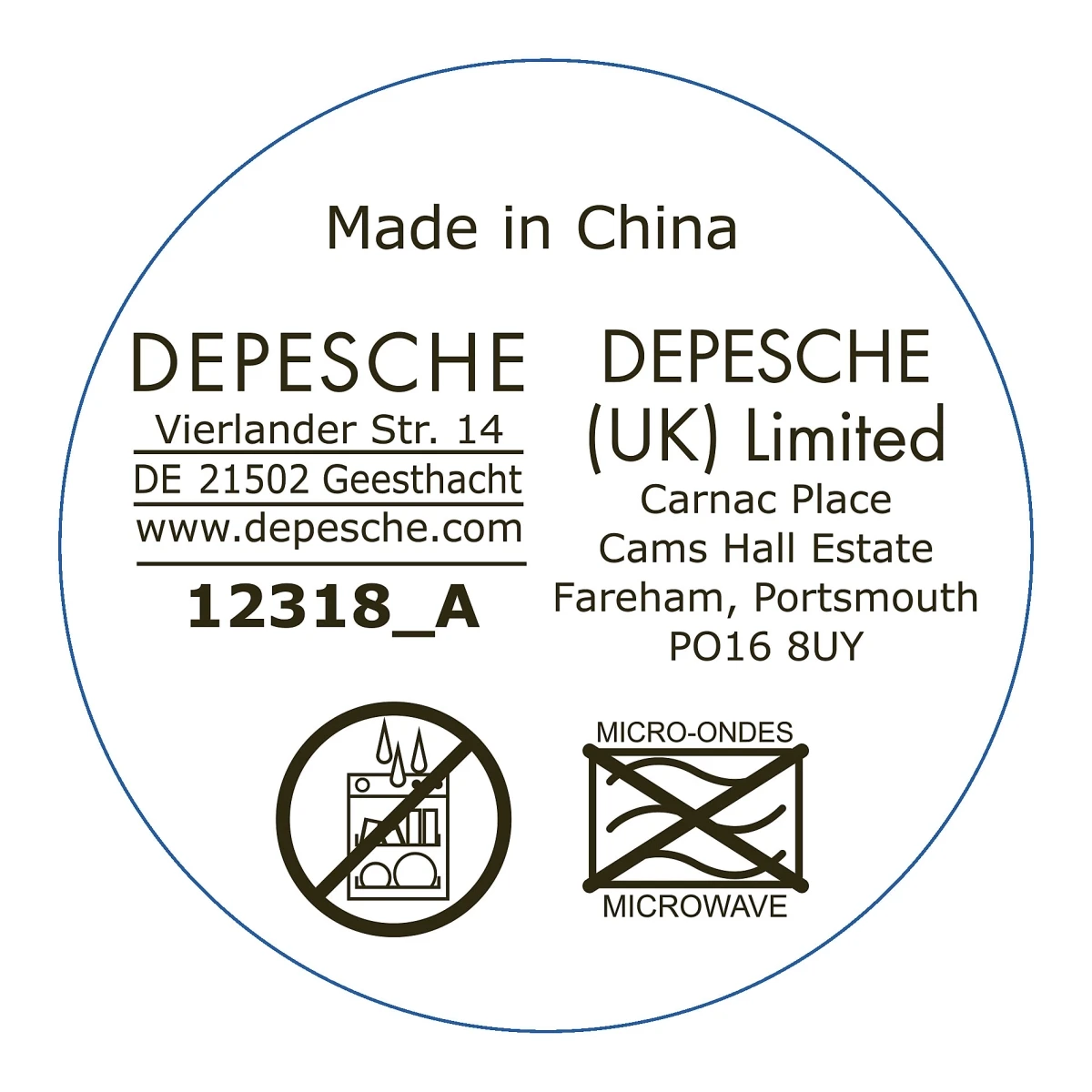 Aufgrund des Aufdrucks wird das Spülen per Hand empfohlen. Nicht geeignet für die Mikrowelle.