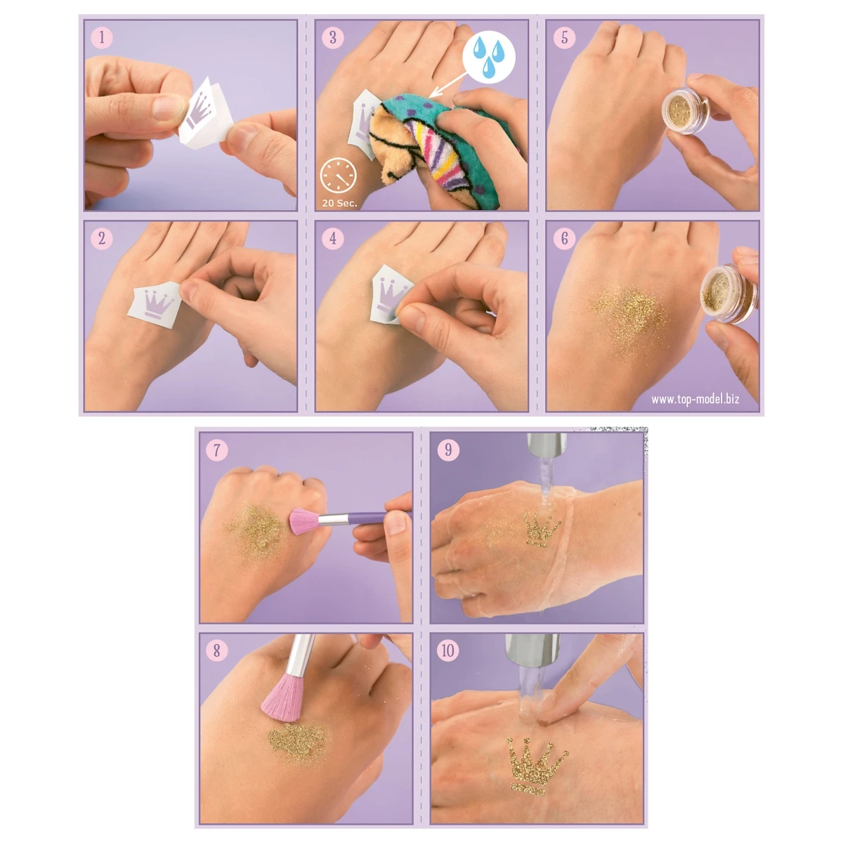 Für traumhaft glitzernde Kunstwerke auf der Haut: Mit dem Ballett-Tattoo-Set von TOPModel zaubert man ganz leicht wunderschöne Motive auf die Haut.