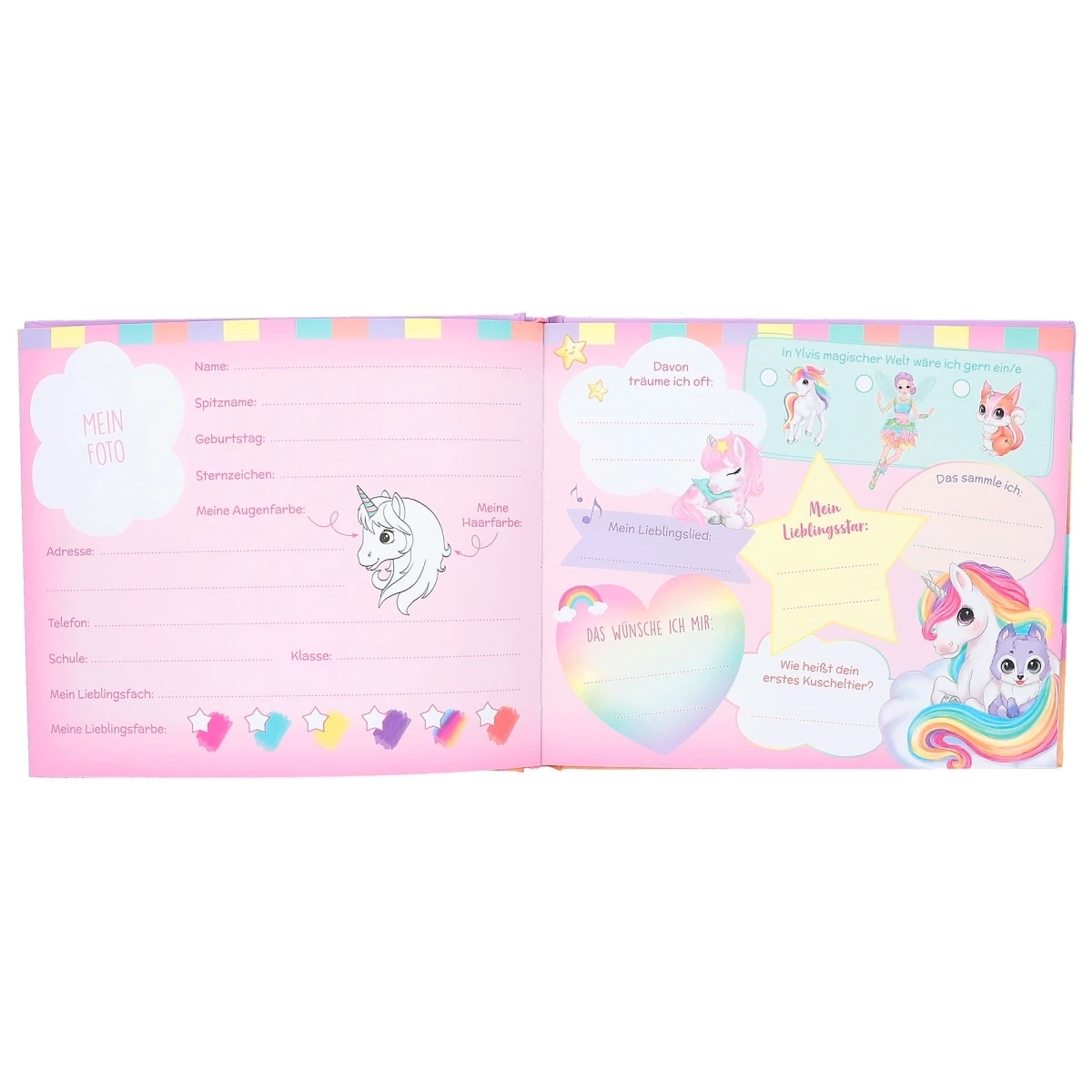 In Einhorn Nayas Freundebuch im bunten Wolken-Design kann man auf 108 liebevoll gestalteten Seiten voller Einhörner und Ponys ausfüllen, ausmalen und ankreuzen.