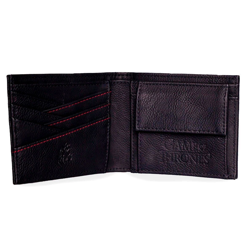 Schwarzer Geldbeutel mit Fächern für Karten, Scheine und Münzfach