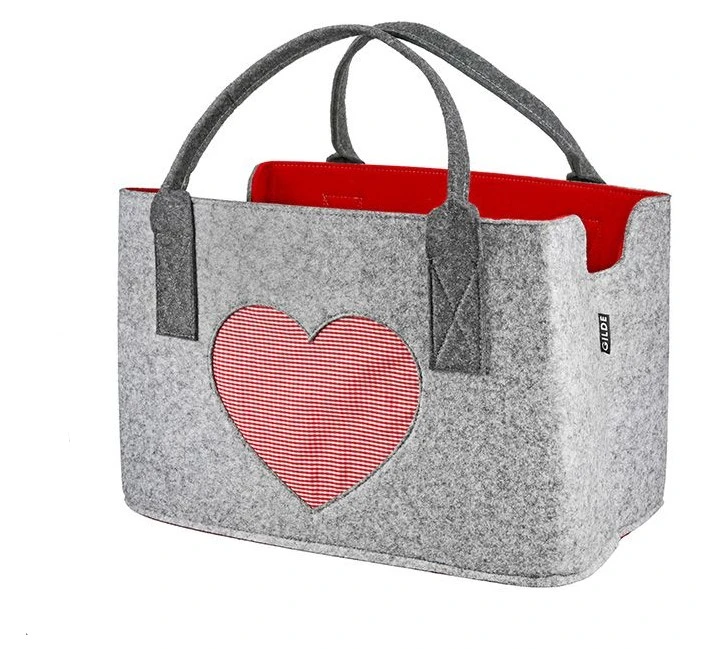 Gilde 44794 Filz Tasche „Love Herz“ Tragetasche Einkaufstasche Hellgrau