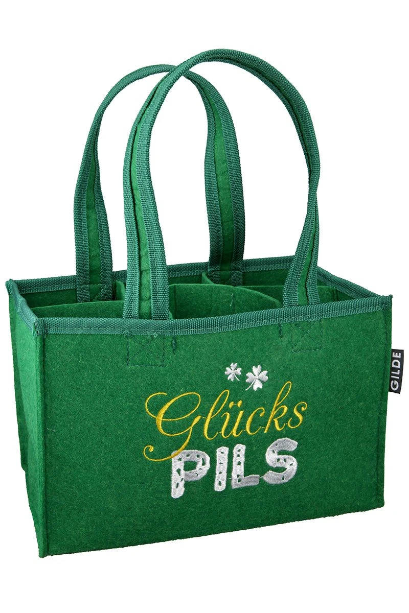 Gilde 44951 Filz Flaschen-Tasche „Glückspils“ 6er Tragerl Grün