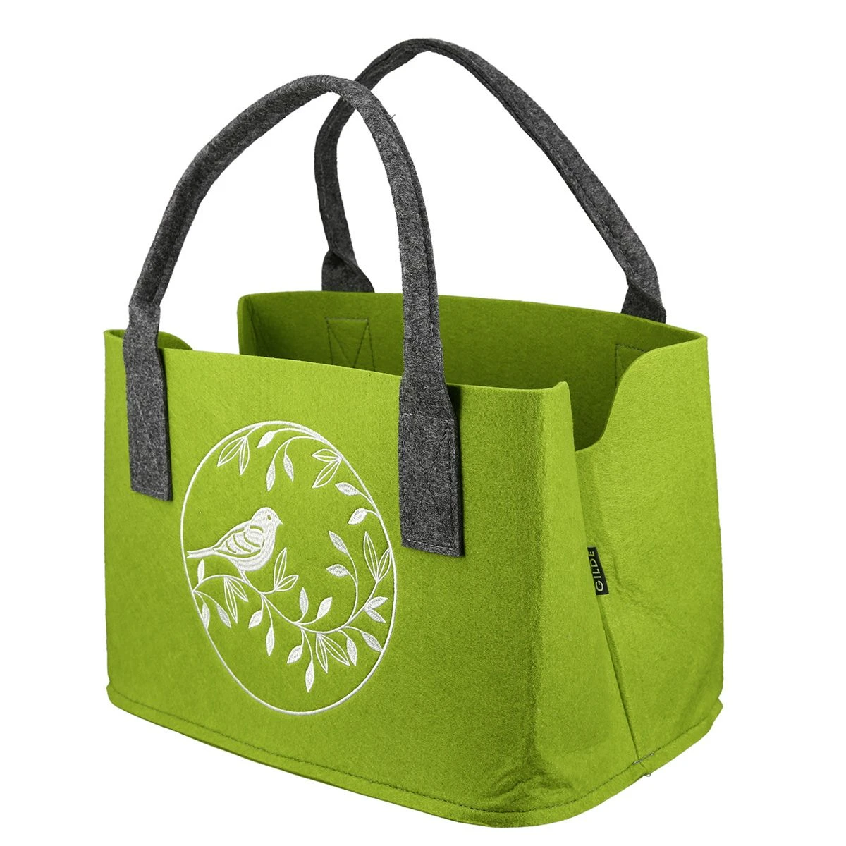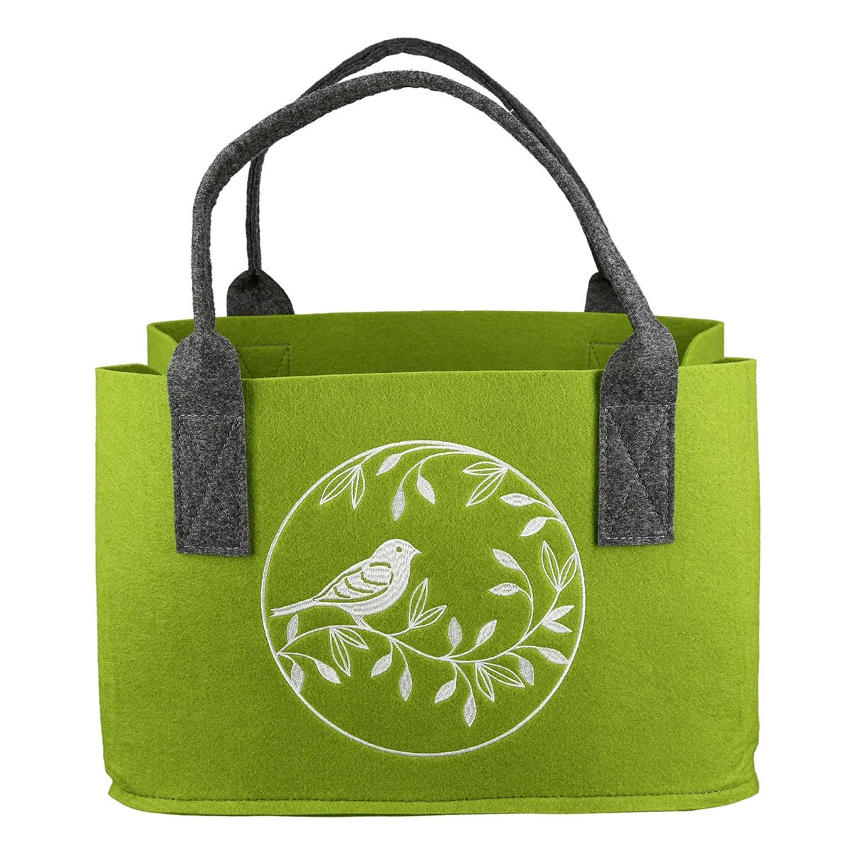 Gilde 49261 Filz Tasche „Vogel Auf Zweig“ Tragetasche Einkaufstasche Grün