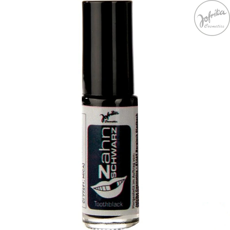 Das Zahnschwarz verhilft Zahnlücken zu zaubern und lässt sich mit dem in der Flasche integierten Pinsel leicht auftragen. Mit Alkohol wieder entfernen.