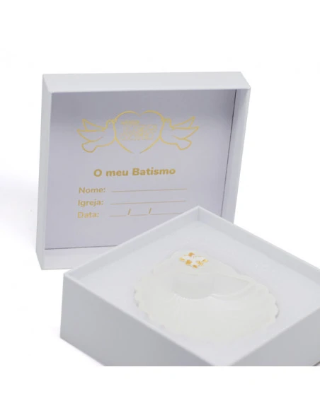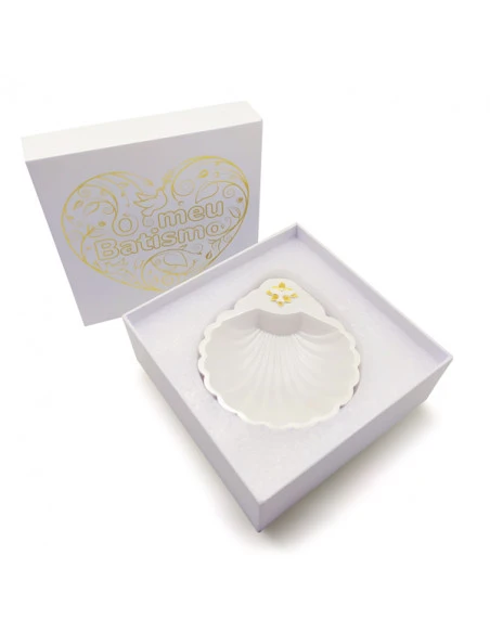 Wunderschöne Muschel mit Symbolen zur heiligen Taufe