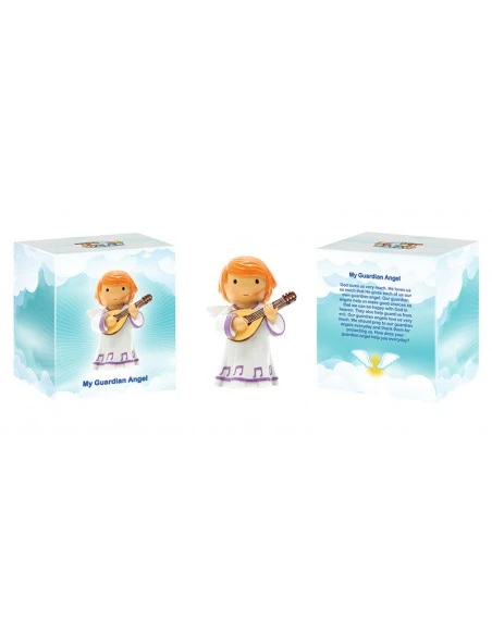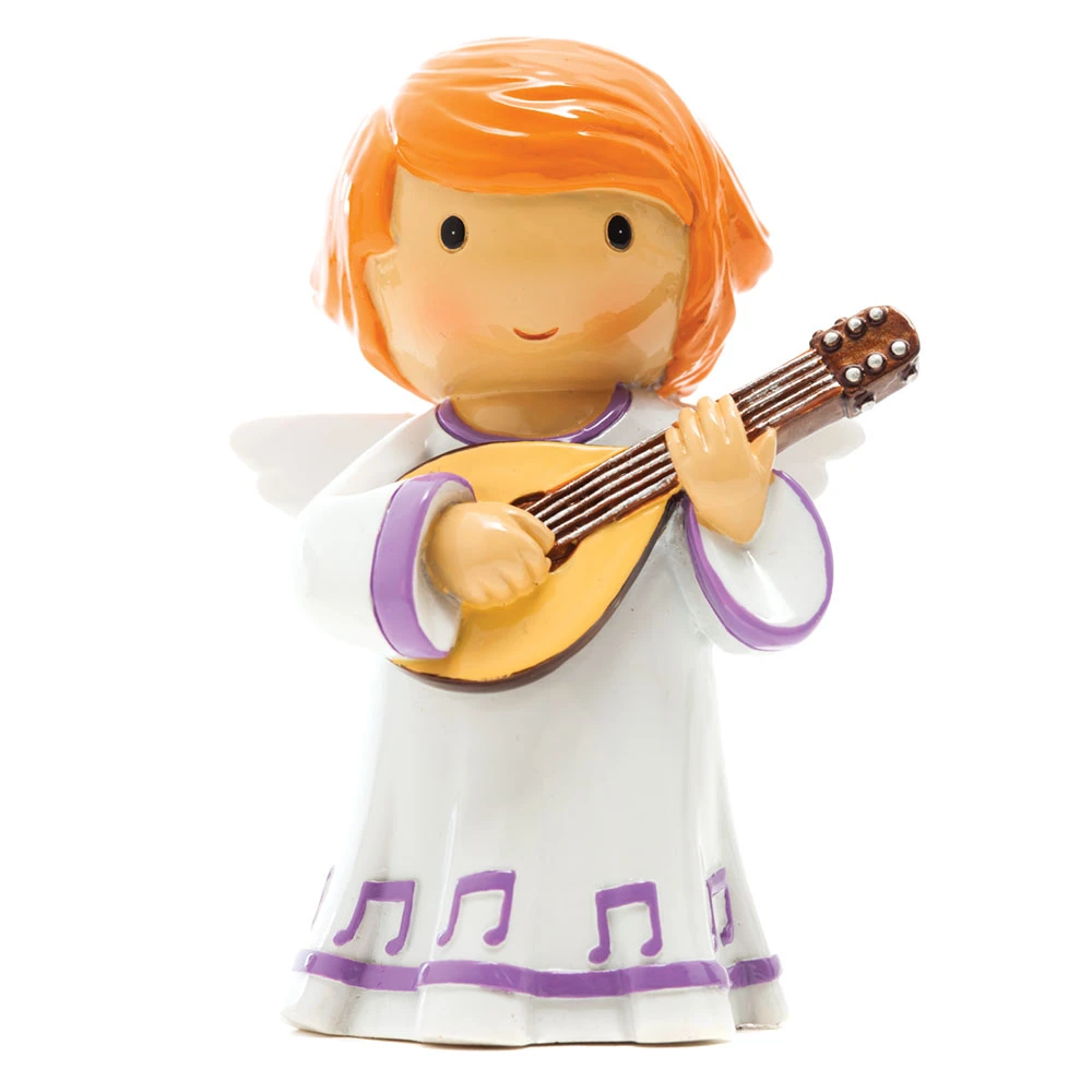 Liebevoll gestalteter Engel mit einem Musikinstrument.