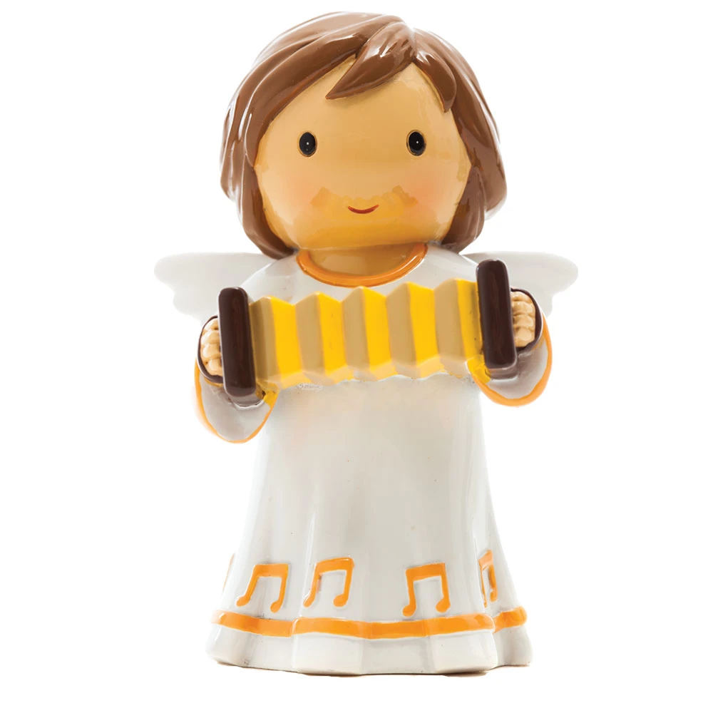 Liebevoll gestalteter Engel mit einem Musikinstrument.