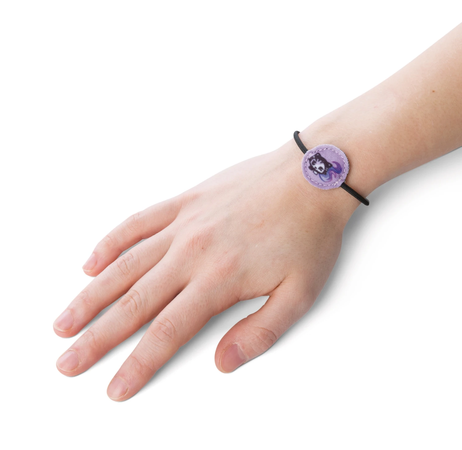 Zu der 20cm großen Puppe aus Plüsch mit den großen aufgestickten Augen, glitzernden Ohren und glitzernder Nase aus Kunststoff gibt es einen Kamm, passende Tattoos sowie ein Armbändchen.