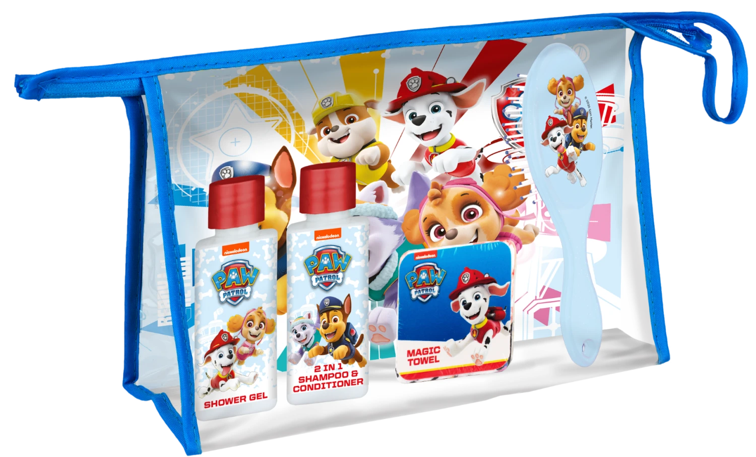 Das PAW Patrol Bath Essentials Set bietet eine tolle Produktkombination mit sytlischer Kulturtasche zum Verreisen.